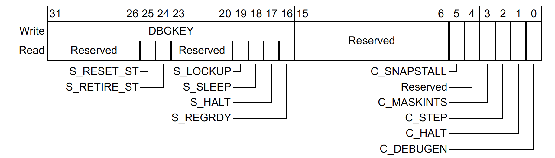 Debug Halting Control and Status Register (DHCSR), 0xE000EDF0